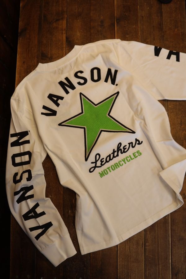 VANSON バンソン NVLT-2508 天竺ロンTee ワンスター刺繍長袖Tシャツ オフホワイト
