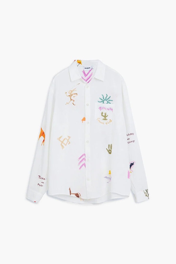 【SALE 30%】DESIGUAL デシグアル メンズ シャツ 25SMCW22 CAM_CAMEL 1000 BLANCO