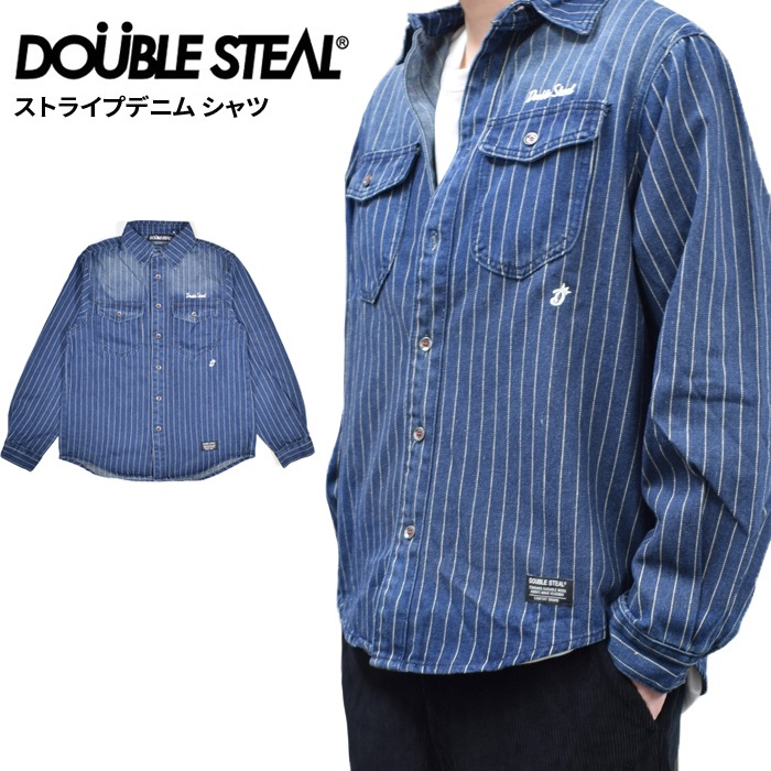 DOUBLE STEAL ダブルスティール シャツ STRIPE DENIM SHIRTS ストライプ デニム シャツ カジュアル...