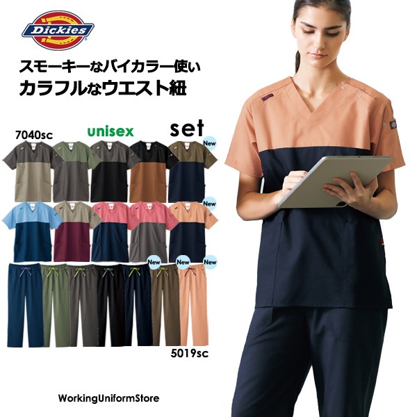 医療白衣セット ディッキーズスクラブ7040SC パンツ5019SC パルパー制電トロ フォーク