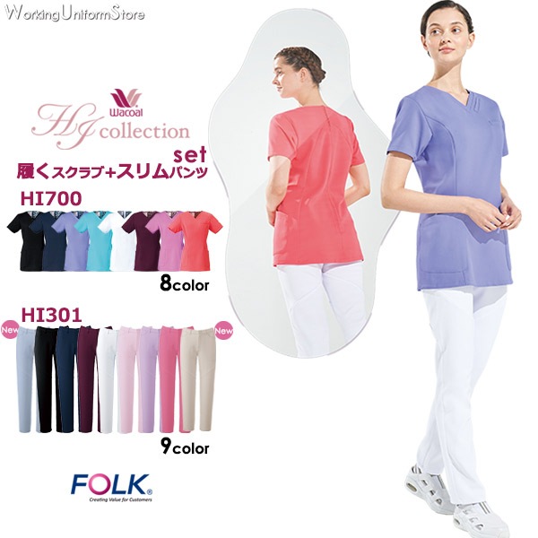 ワコールHIコレクション スクラブ白衣セットHI700 スリムストレートパンツHI301 ネオα フォーク