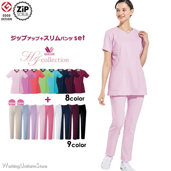 医療 白衣 ナース 上下セット レディスジップスクラブ HI704 スリムストレートパンツ HI301 ワコールWacoal フォ...