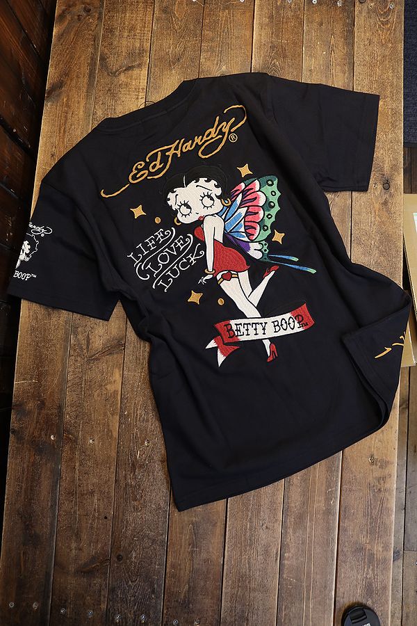 BETTY BOOP×ED HARDY BED-2504 天竺Tee ベティ×エドハーディー 刺繍Tシャツ ブラック