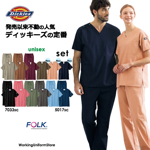 医療白衣セット ディッキーズスクラブ7033SC パンツ5017SC パルパー制電トロ フォーク