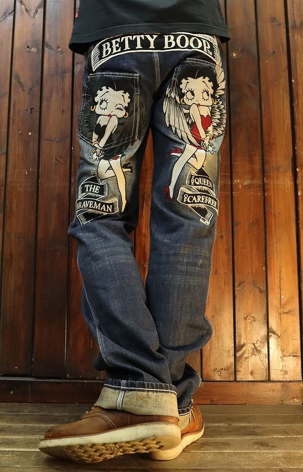 THE BRAVEMAN×BETTY BOOP ベティ・ブープ BBB-2123 刺繍デニムパンツ インディゴ