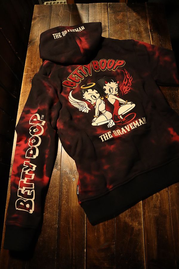 The BRAVE-MAN×BETTY BOOP BBB-2304 裏毛 フルZIPパーカー レッドタイダイ