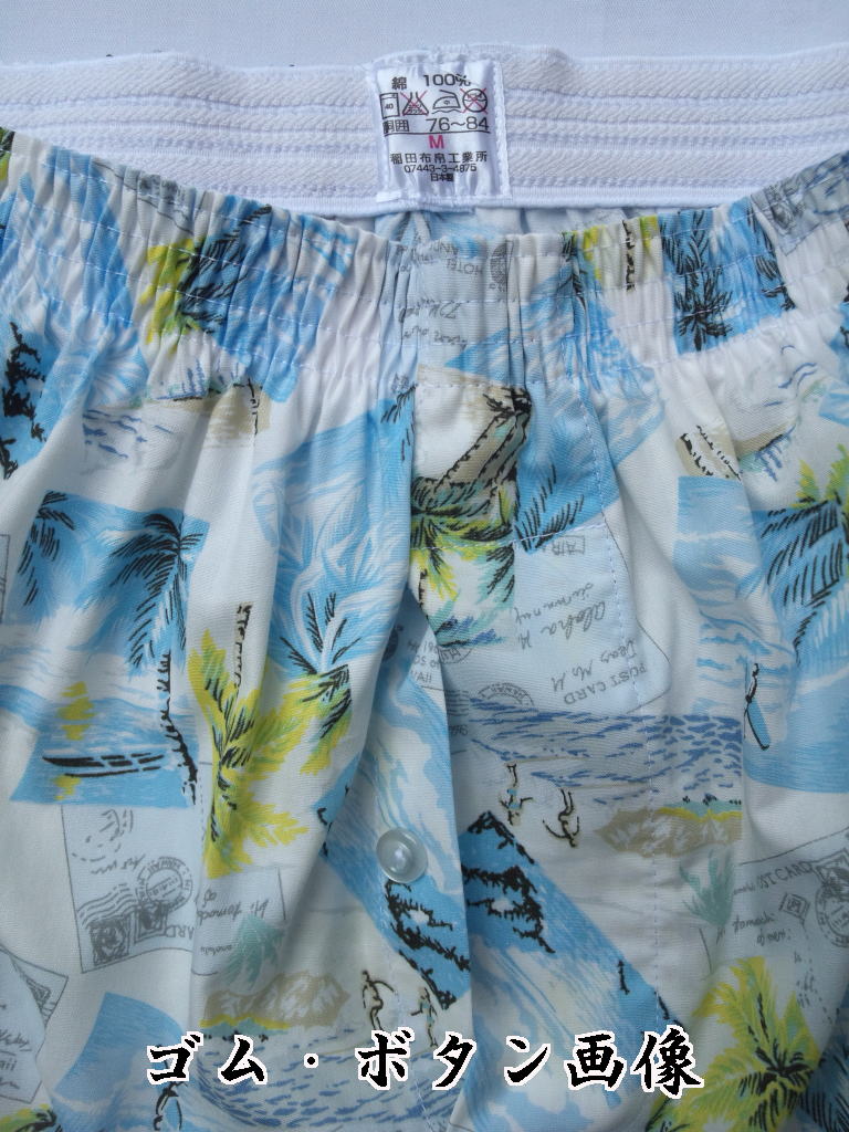 ジョギングトランクス ハワイ柄【青色】S~LL 日本製 綿100%