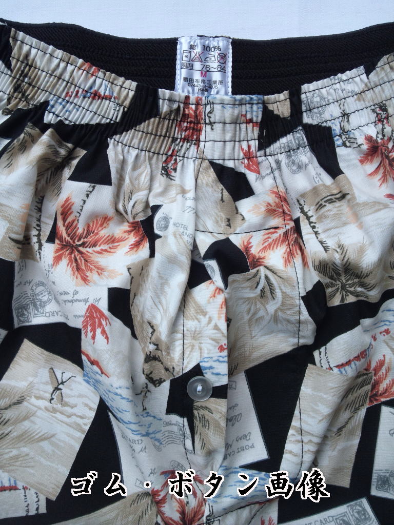 ジョギングトランクス ハワイ柄【黒色】S~LL 日本製 綿100%