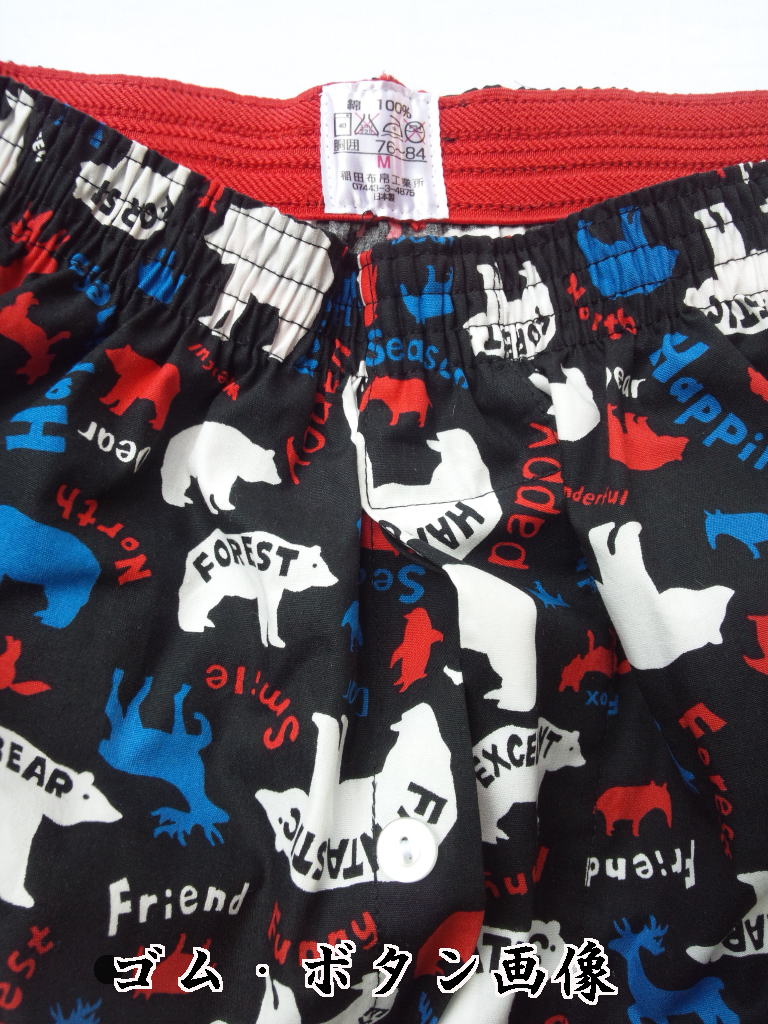 ジョギングトランクス 熊柄【黒色】S~LL 日本製 綿100%