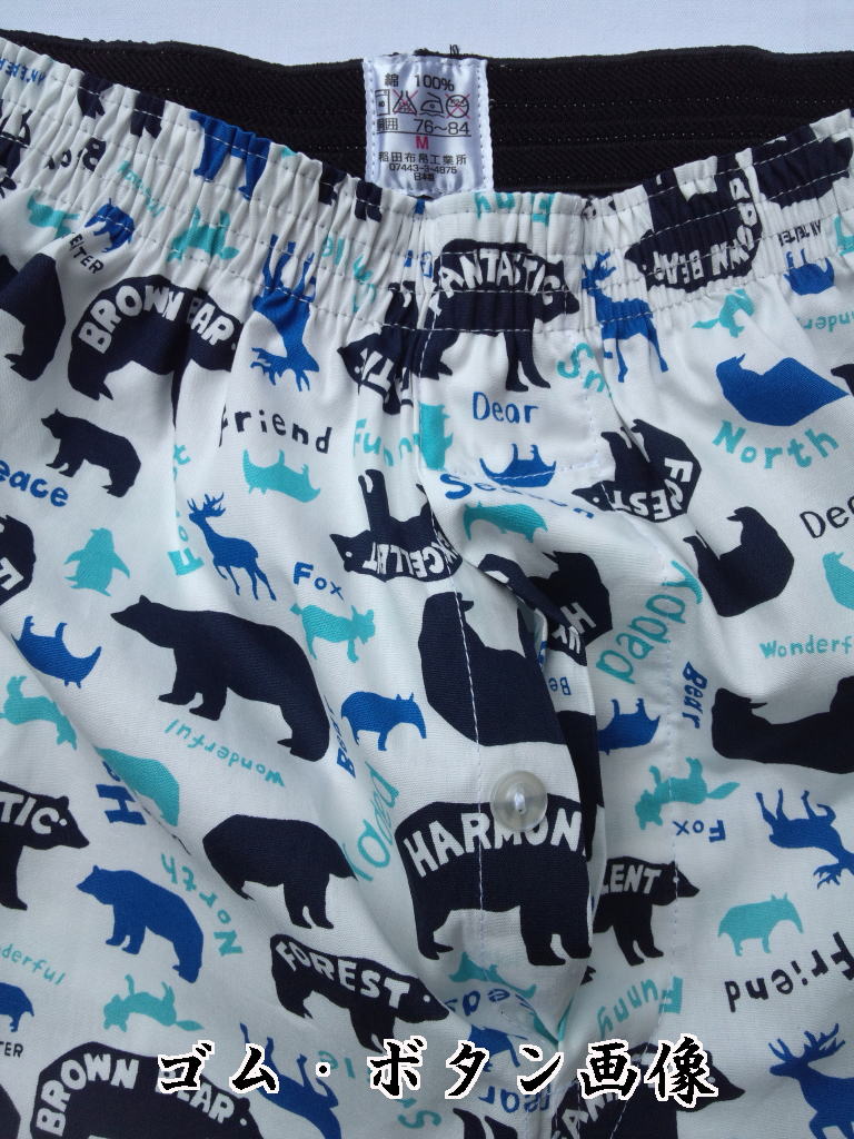 ジョギングトランクス 熊柄【白色】S~LL 日本製 綿100%
