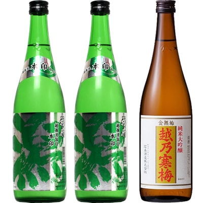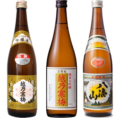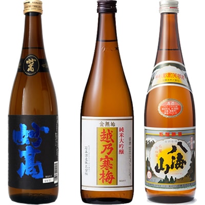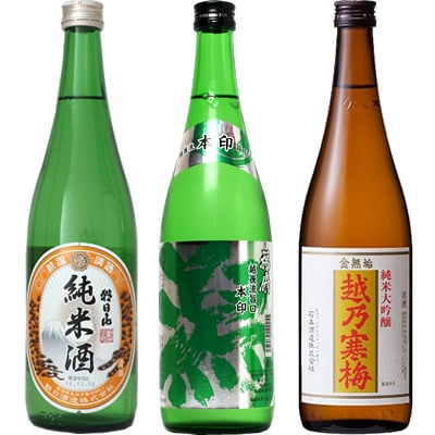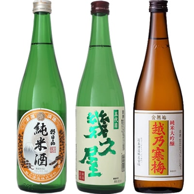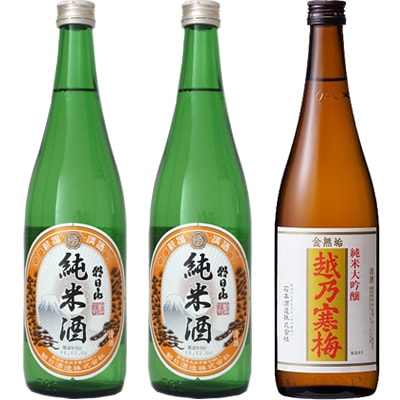 朝日山 純米酒 720ml と 越後流旨口 潟 本醸造 720mlと越乃寒梅 金無垢 純米大吟醸 720ml