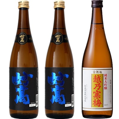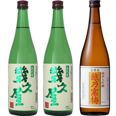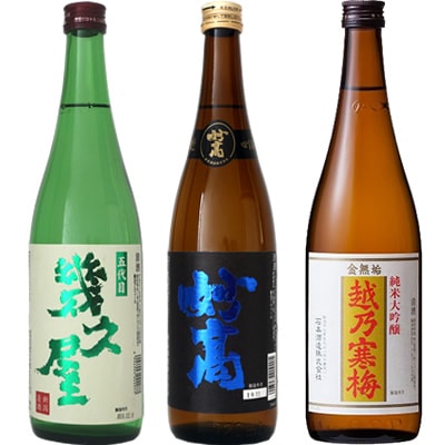 五代目 幾久屋 720ml と 妙高 旨口四段 720mlと越乃寒梅 金無垢 純米大吟醸 720ml