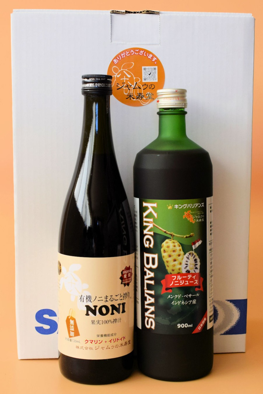 フルーティ・ノニジュースと有機ノニまるごと搾り飲み比べ、各1本