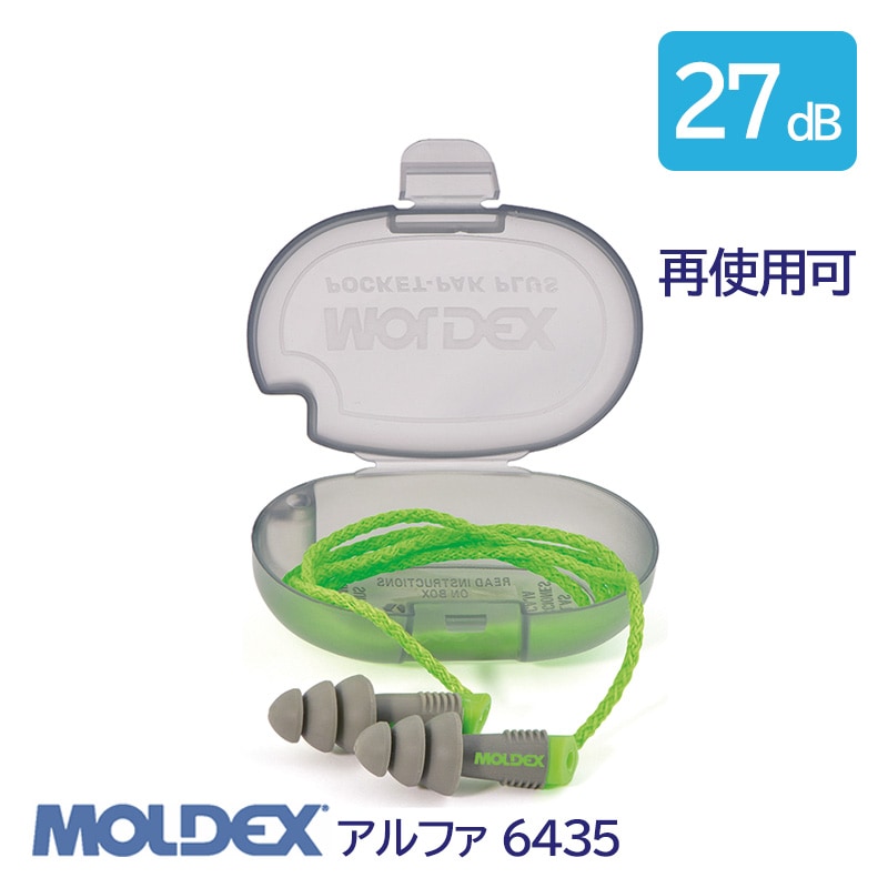 MOLDEX モルデックス 耳栓 高性能 コード 付 遮音値 27dB アルファ 6435 1組 防じん 再使用可
