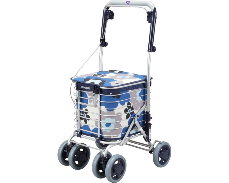 ユーバ産業 スワレル / AS-0275 花柄ネイビーブルー 敬老の日 お買いものカート ショッピングカート 母の日 シルバー