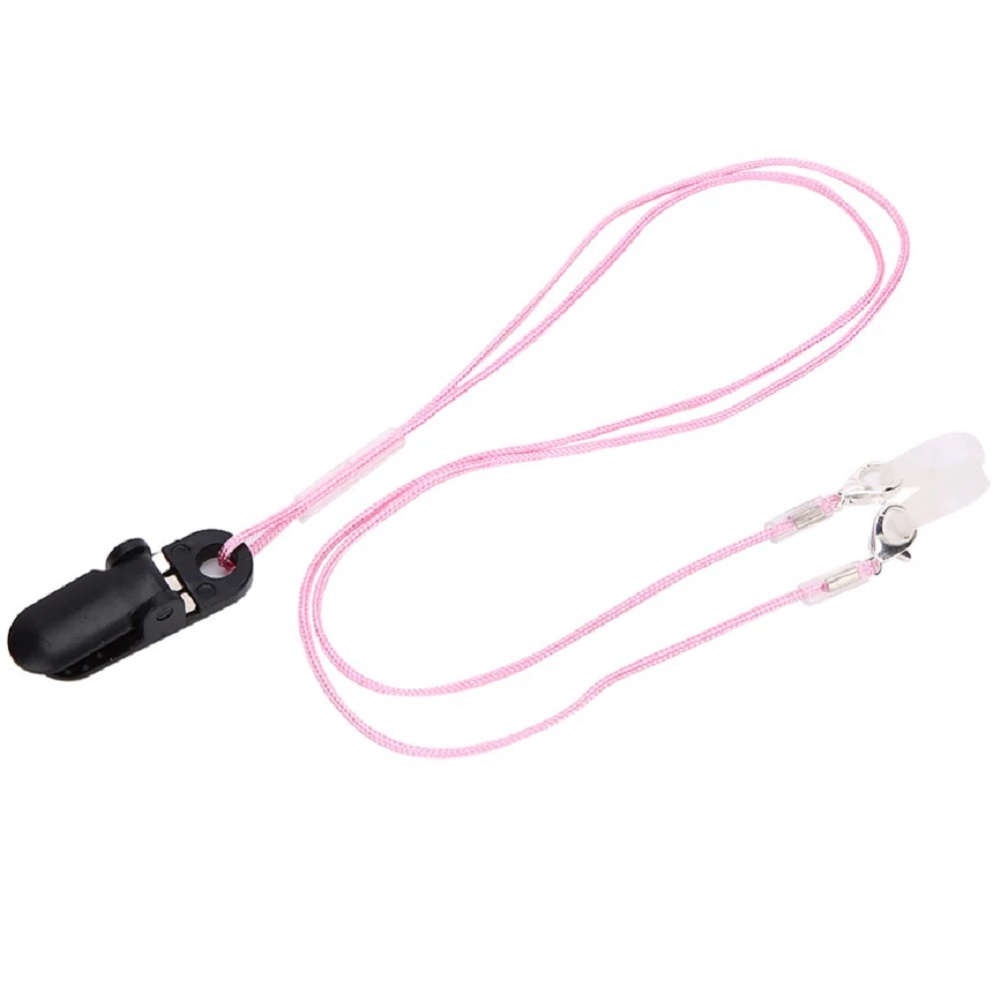 【両耳用】 補聴器落下防止クリップ付き ストラップ :ピンク