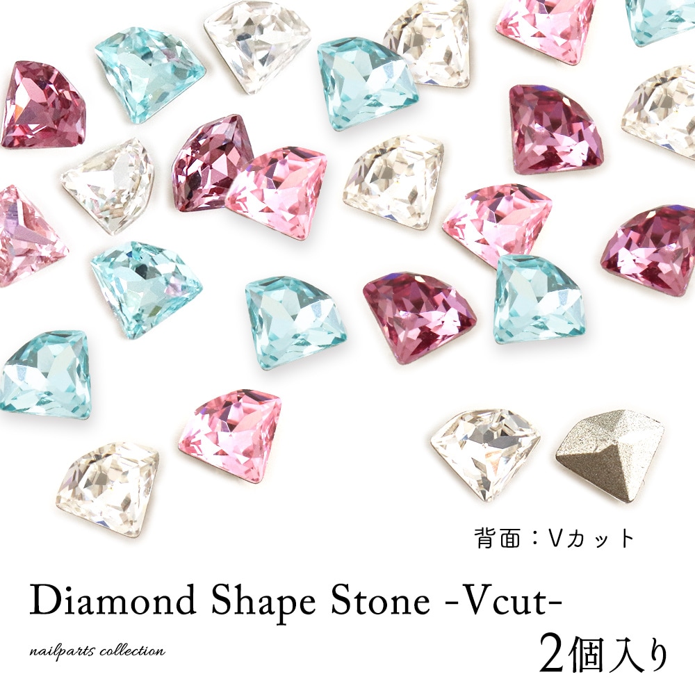 【ネコポス送料無料】ラインストーン ダイヤモンド型ストーン -Vカット- 全4種 2個入り