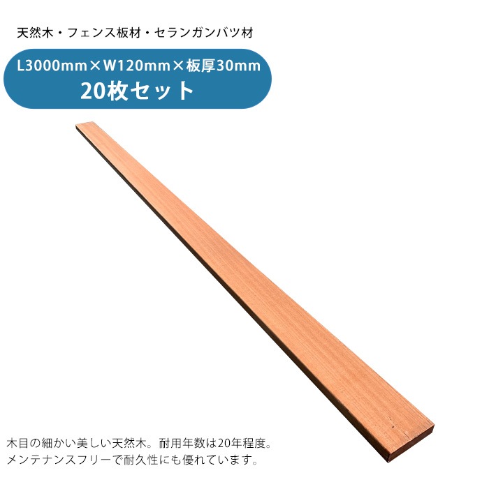【天然木目隠しフェンス】セランガンバツフェンス板材(20枚セット) L3000mm×W120mm×板厚30mm【バンキライ ハード...