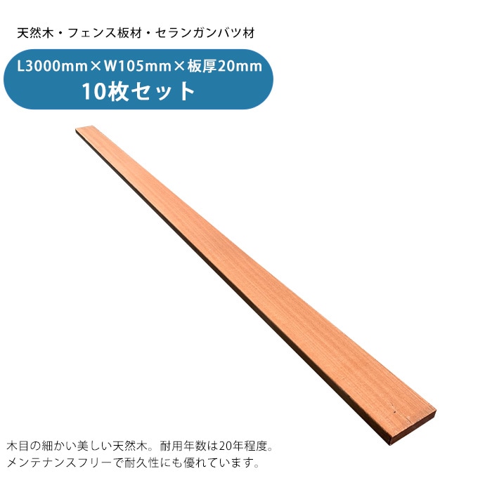 【天然木目隠しフェンス】セランガンバツフェンス板材(10枚セット) L3000mm×W105mm×板厚20mm【バンキライ ハード...