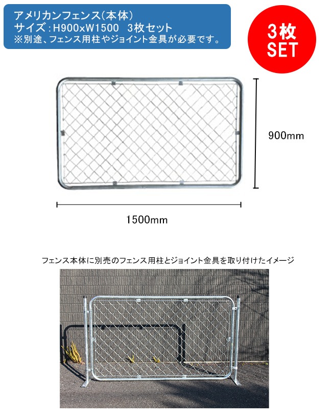 アメリカンフェンス本体 3枚セット サイズ:H900mm×W1500mm 型番:AF-1500【お庭 ガレージ 柵 無骨なフェンス...