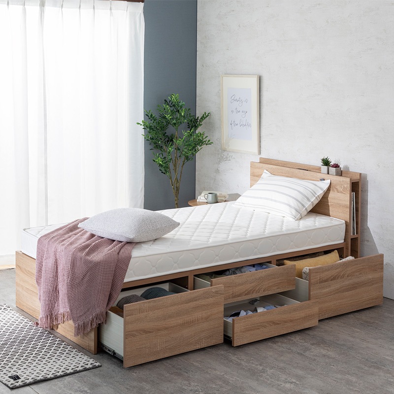 棚・コンセント付きチェストベッド Dサイズ 【Pukia -プキア-】 STL-D-WOK-TU ホワイトオーク