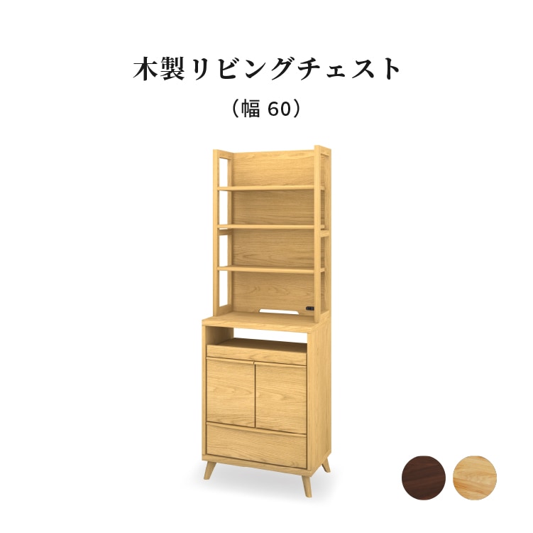 [幅60]デスク パソコンデスク ハイチェスト スライドテーブル オープン収納 チェスト プリンターワゴン