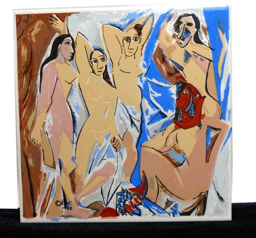 【希少】スペイン製 Picasso / パブロ・ピカソ「アヴィニョンの娘たち」 陶板画プリント / タイルプリント / 陶器 DD...