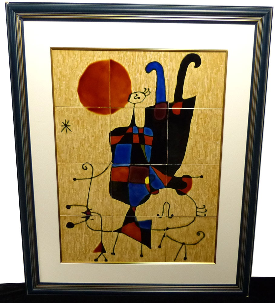 【希少】ジョアン ミロ /Joan Miro 「太陽の前の人と犬」 陶板画 額装【中古】【送料無料】