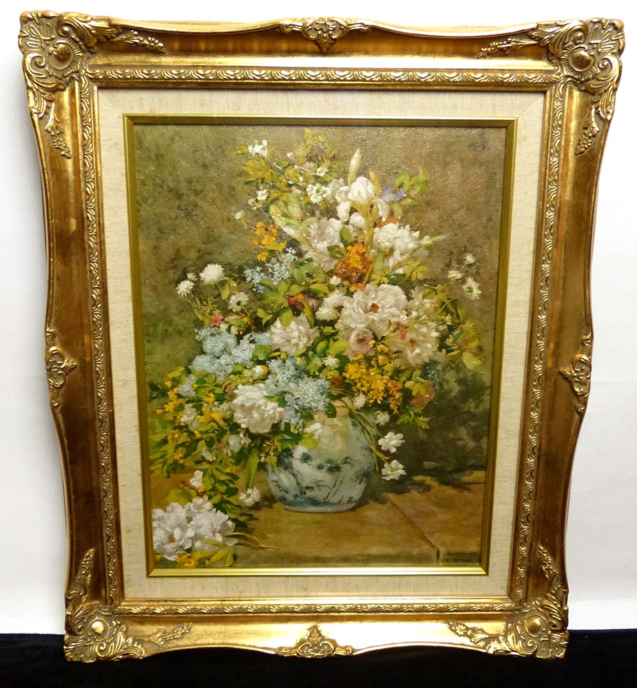 ルノワール「春の花」立体複製画 豪華額縁 額装 6号/F6【中古】【送料無料】