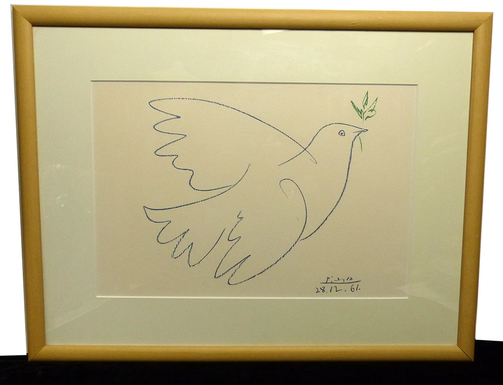 パブロ・ピカソ「青い鳩」リトグラフポスター「COPYRIGHT S.P.A.D.E.M PARIS」のエンボス印【中古】【送料無料...