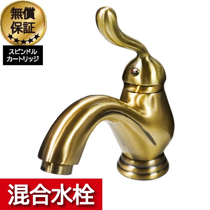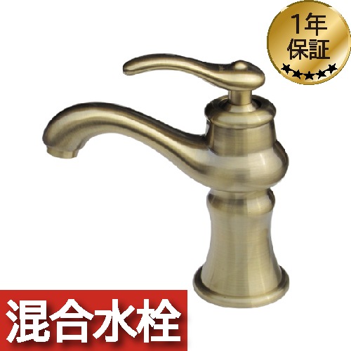 蛇口 混合水栓 シングルレバーハンドル アンティークゴールド(古金) 奥行14×吐水口高6.5cm INK-03030089H