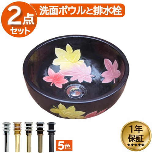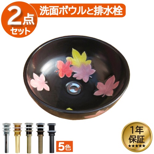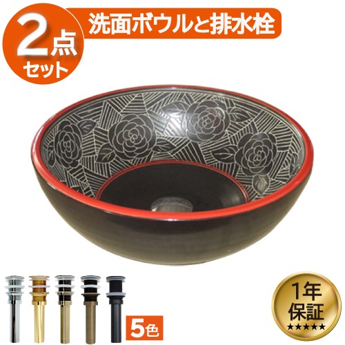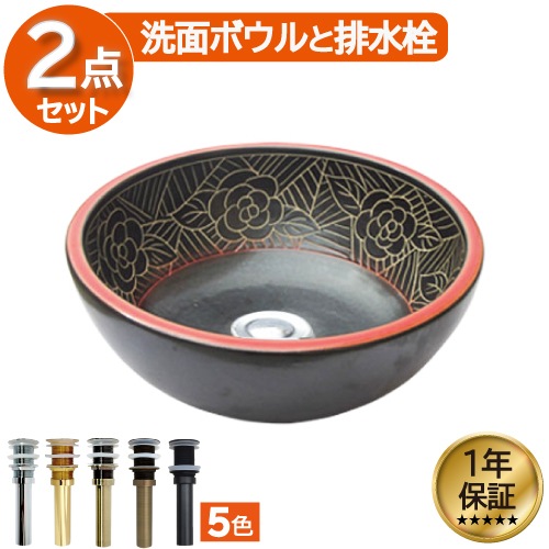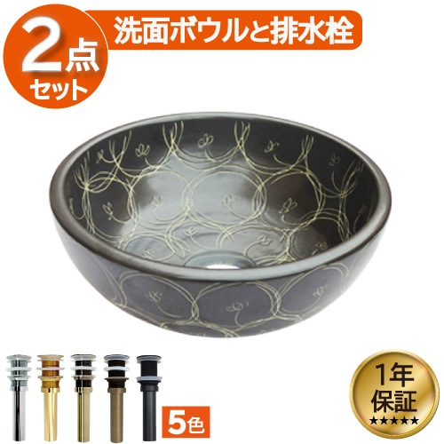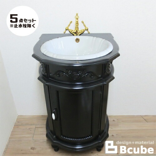 洗面台 洗面化粧台 「陶器洗面ボウル+化粧台+混合水栓+プッシュ式排水栓+トラップ」の5点セット ブラック 〔Eセット53〕INK...