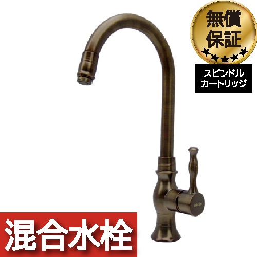 蛇口 混合水栓 シングルレバーハンドル アンティークゴールド(古金) 奥行17.5×吐水口高11cm INK-0303049H