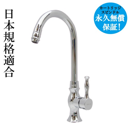 蛇口 混合水栓 シングルレバーハンドル シルバー(銀) 奥行18×吐水口高7cm INK-FHK001