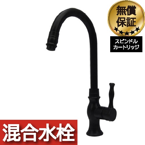 蛇口 混合水栓 シングルレバーハンドル ブラック(黒) 奥行17.5×吐水口高11cm INK-0303050H