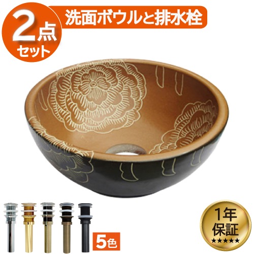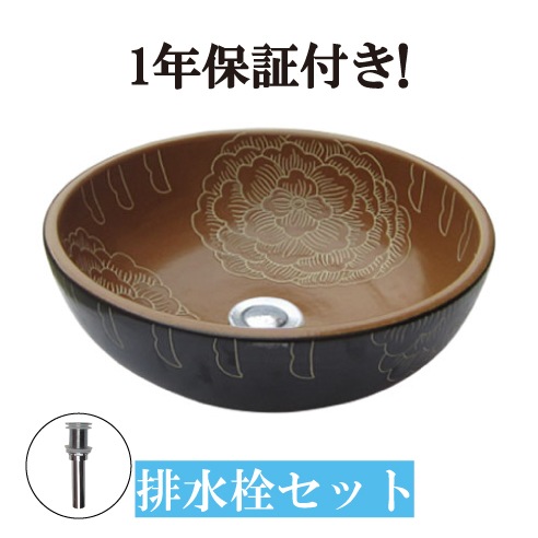 洗面ボウル 陶器 オンカウンター 置き型 ベッセル ラウンド 幅33cm INK-0403157H