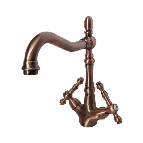 蛇口 混合水栓 スパウト可動式 2レバーハンドル レッドブロンズ(赤胴) 奥行21×吐水口高18.5cm INK-03030183...