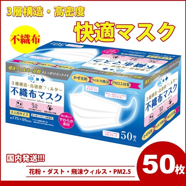 【即納】 マスク ウイルス対策 コロナ 50枚 普通サイズ 大人使い捨て プリーツマスク 不織布 花粉 ウイルス ホコリ ワイヤー...