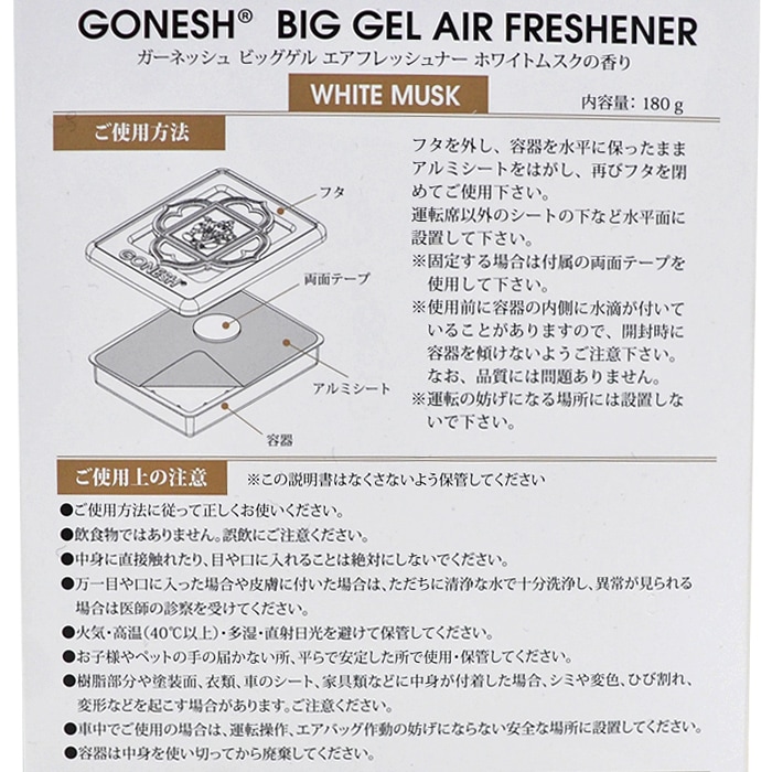 GONESH ガーネッシュ WHITE MUSK BIG GEL AIR FRESHENER ビッグゲルエアーフレッシュナー フレ...