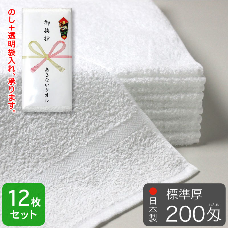 総パイル 白フェイスタオル 200匁 標準厚 粗品タオル 泉州産 日本製・12枚セット