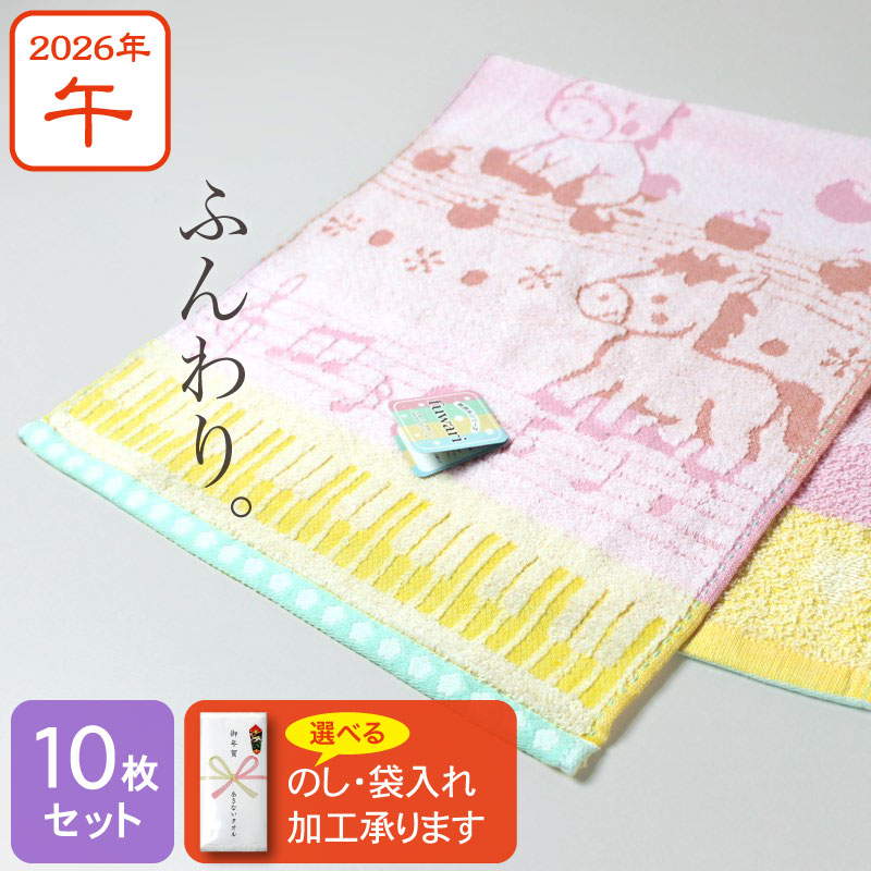 ふんわり干支タオル お年賀タオル fuwari/メロディ 2026年 午年 馬 粗品 ご挨拶・10枚セット
