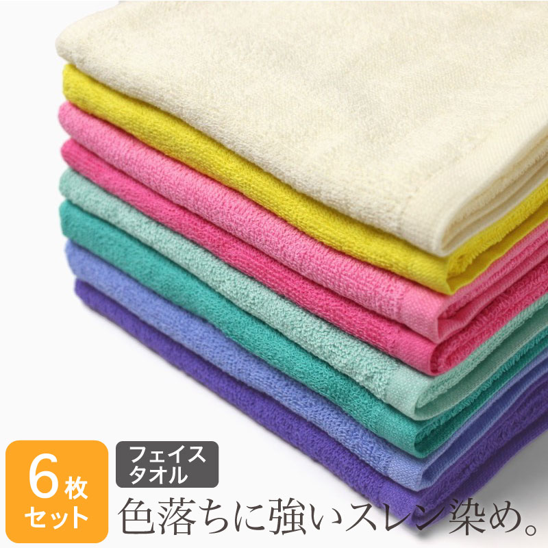 業務用 スレン染め フェイスタオル・240匁 (ブライトカラー)・同色6枚セット