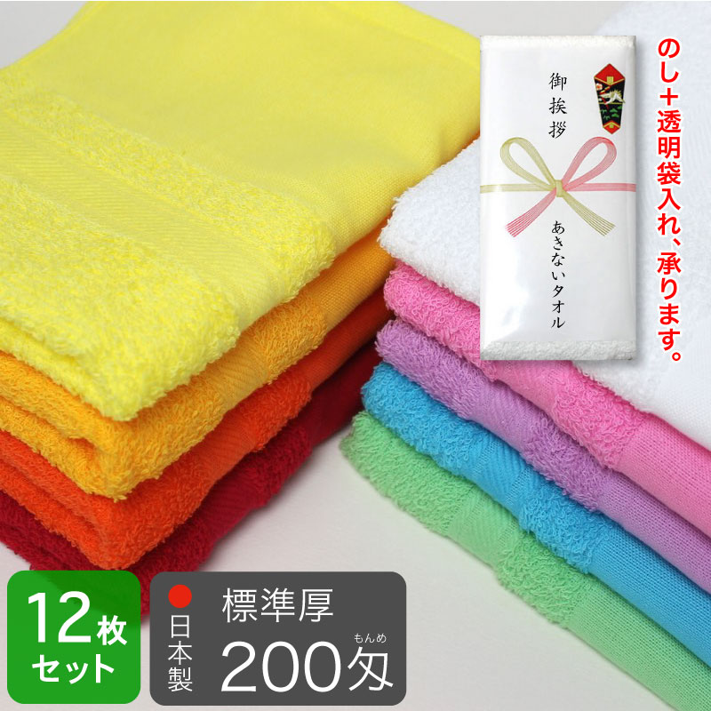 平地付き カラーフェイスタオル 200匁 標準厚 粗品タオル 日本製・同色12枚セット