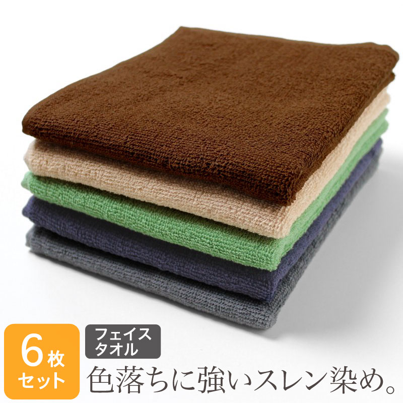 業務用 スレン染め フェイスタオル・240匁(シックカラー)・同色6枚セット