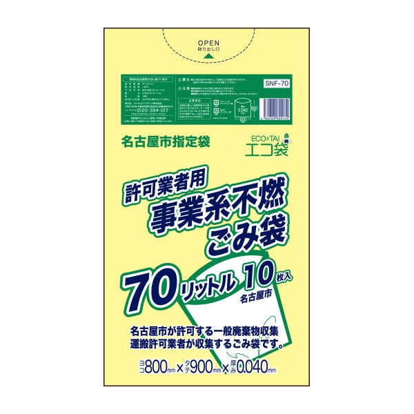 名古屋市事業系指定袋 不燃 70リットル 0.040mm厚 黄色(10枚x40冊)