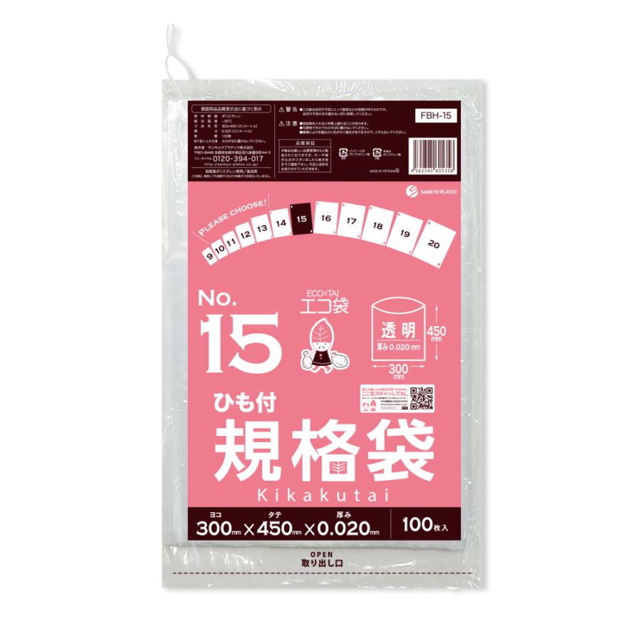 規格袋15号 ひも付 透明 0.020mm厚(100枚×40冊)