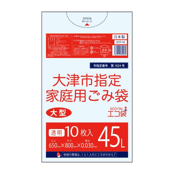 大津市指定袋 45リットル 0.030mm厚 透明(10枚x60冊)