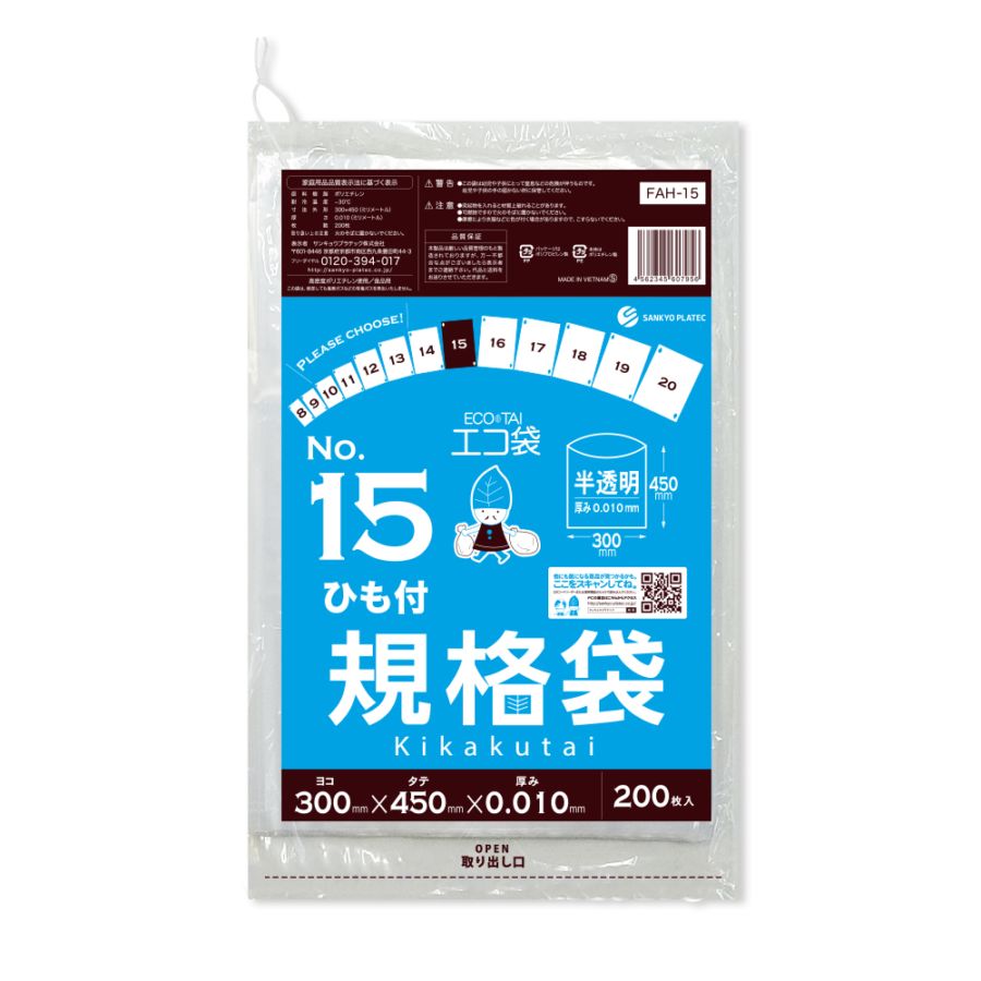 規格袋15号 ひも付 半透明 0.010mm厚(200枚×40冊)