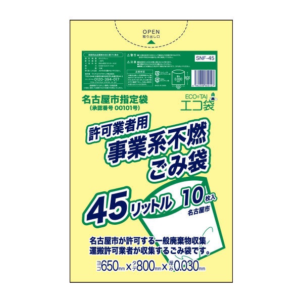 名古屋市事業系指定袋 不燃 45リットル 0.030mm厚 黄色(10枚x60冊)