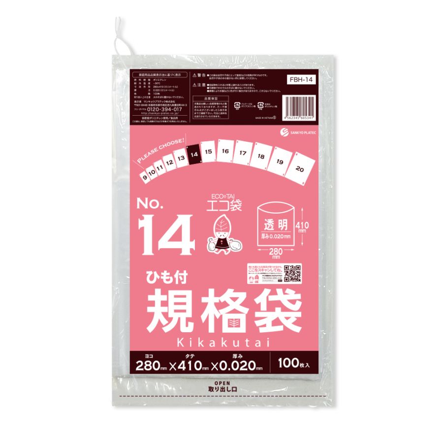 規格袋14号 ひも付 透明 0.020mm厚(100枚×40冊)